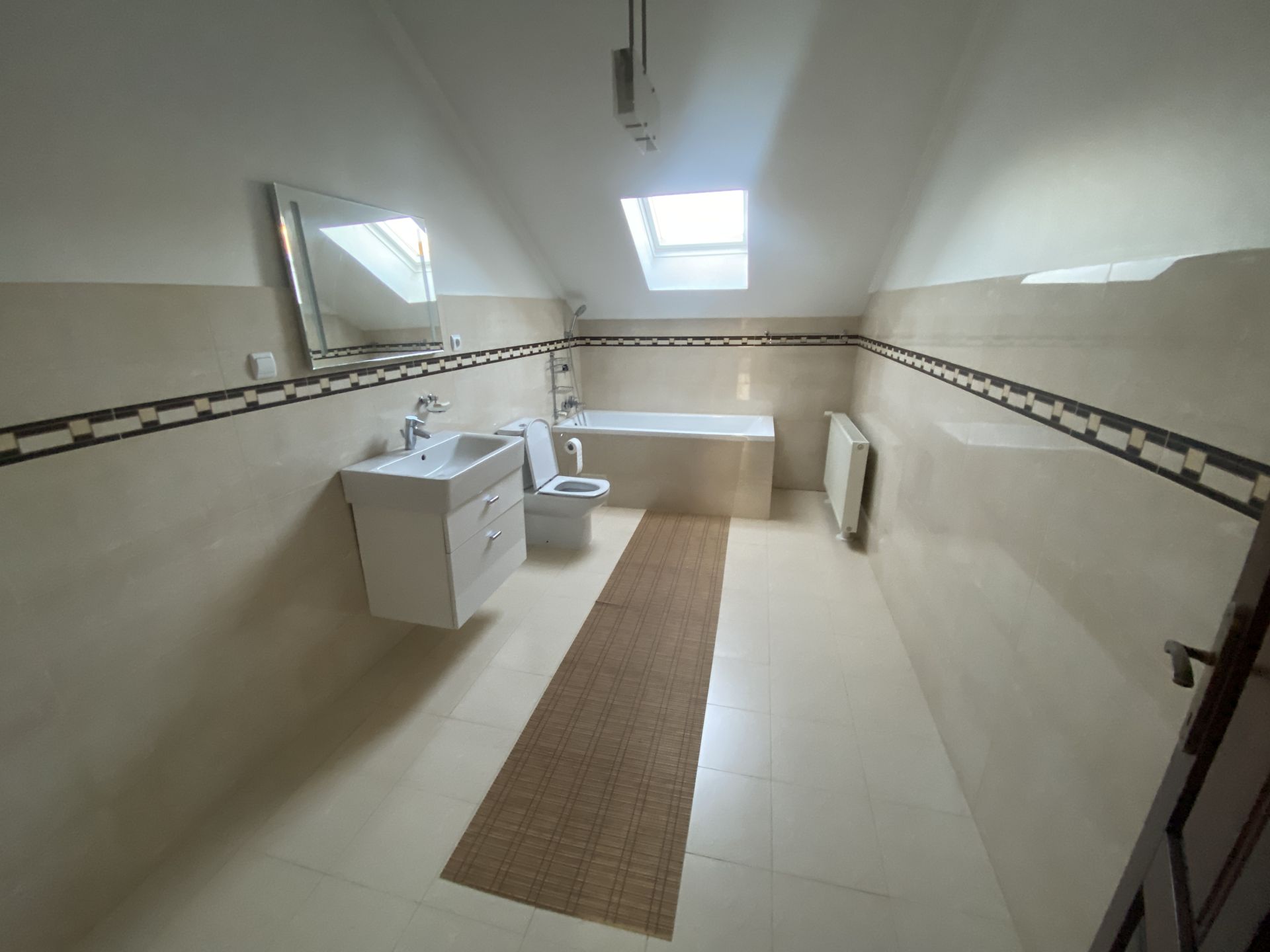 - Podlahy: drevené podlahy, kúpeľňa a chodba dlažba