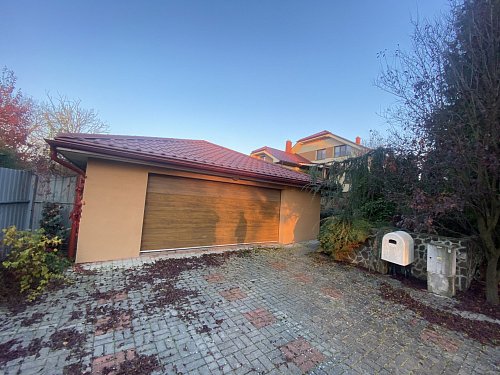 Pred domom priestranná garáž pre dve autá, zavedená elektrina, voda a odpad.