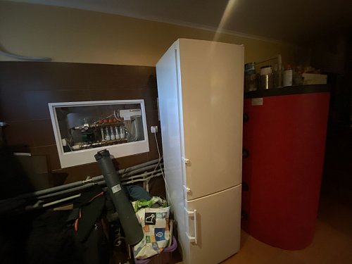 - technická miestnosť s kotlom na vykurovanie plynom + kotol na drevo + výmenník vody pripravený pre napojenie slnečných kolektorov a východ do záhrady,